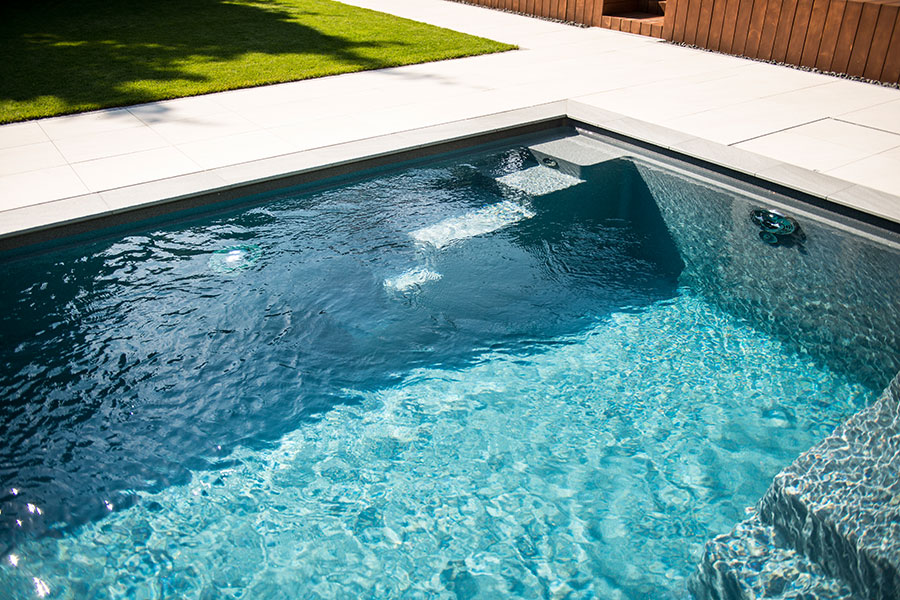 - Stufenleiste rund um das Becken verleiht auch ungeübten Schwimmern Sicherheit